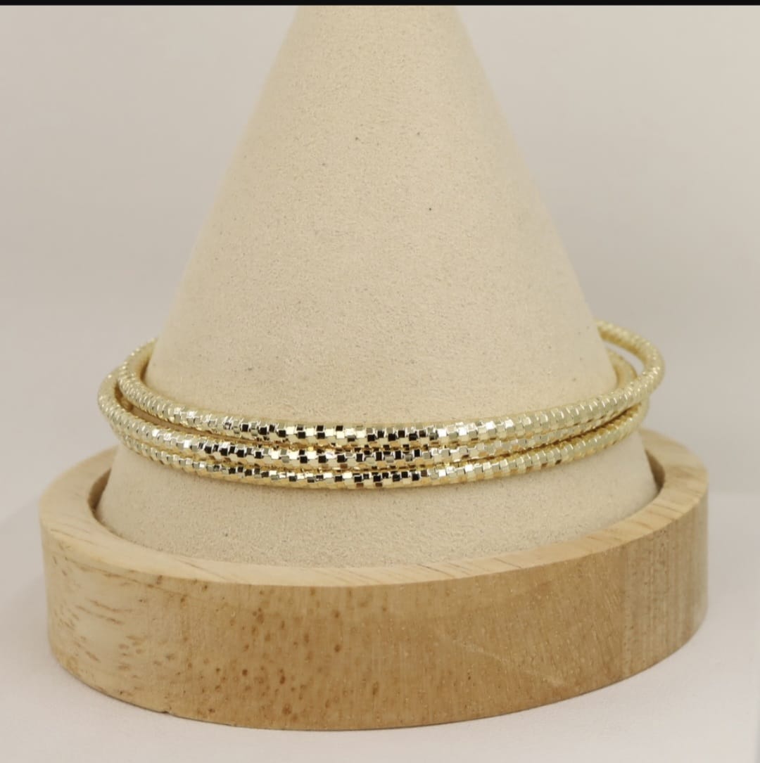 Adaugă o notă de rafinament și strălucire ținutei tale cu această brățară stil bangle, definită printr-un design modern și o textură sofisticată. Această piesă este ideală pentru femeia care apreciază accesoriile clasice, dar cu un twist contemporan.