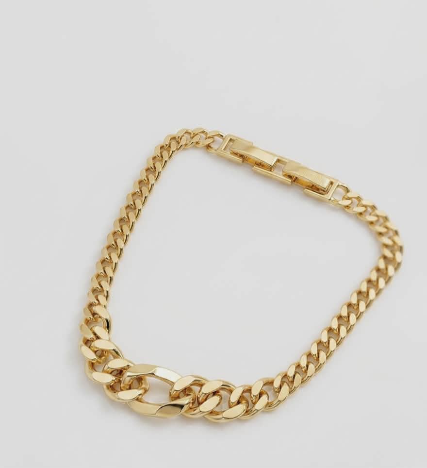 Adaugă o notă de rafinament ținutelor tale cu această brățară Cuban Link de un auriu strălucitor. Designul atemporal cu zale groase și bine finisate oferă un aspect de lux și o prezență puternică la încheietură. Este piesa ideală pentru a fi purtată singură sau în combinație cu un ceas elegant