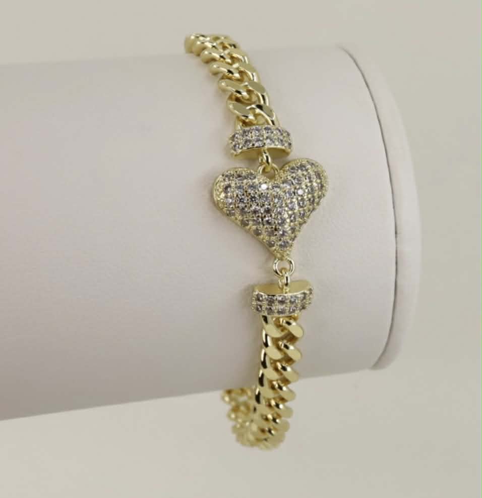 Descoperă eleganța supremă cu această brățară spectaculoasă, creată pentru a atrage toate privirile. Modelul îmbină designul clasic al unui lanț cuban cu simbolul atemporal al iubirii.