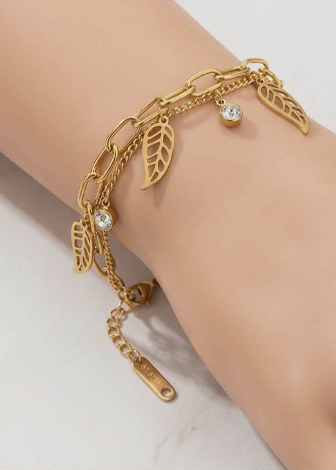 Fii în pas cu moda cu această brățară cu design organic! Combinația dintre zalele geometrice și detaliile delicate inspirate din natură o face ușor de asortat atât la ținute casual, cât și la rochii elegante.