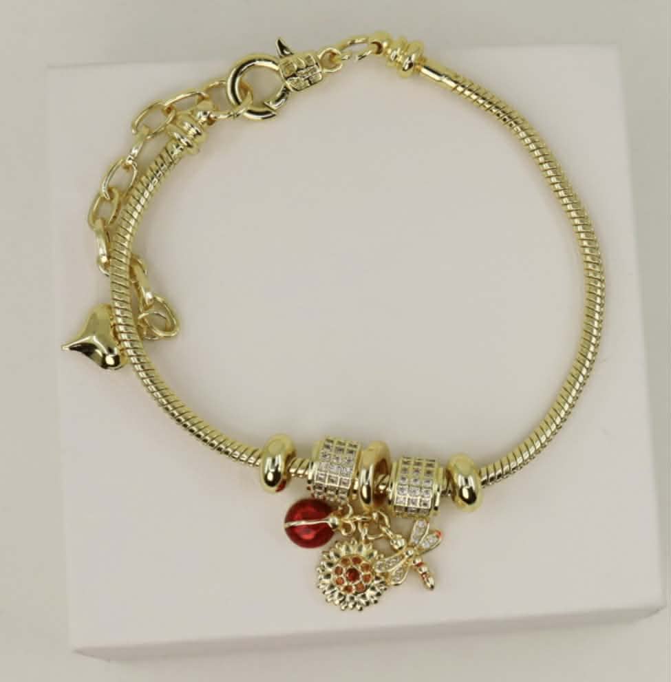 Adaugă o notă de strălucire și feminitate ținutei tale cu această brățară deosebită, inspirată de designul clasic Pandora. Bijuteria este realizată cu o atenție sporită la detalii, având un aspect luxos datorită placării cu