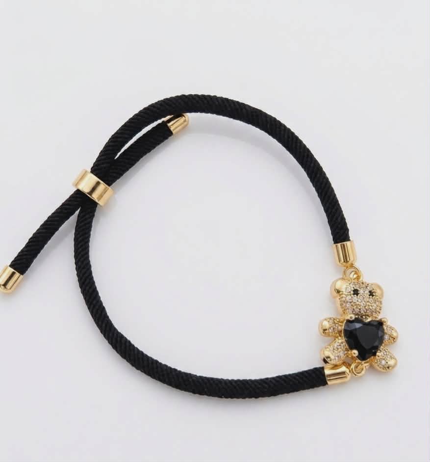 Adaugă o notă de rafinament și drăgălășenie stilului tău zilnic cu această brățară deosebită. Designul combină contrastul puternic dintre șnurul negru intens și elementele aurii strălucitoare, creând un accesoriu versatil, potrivit pentru orice ocazie.