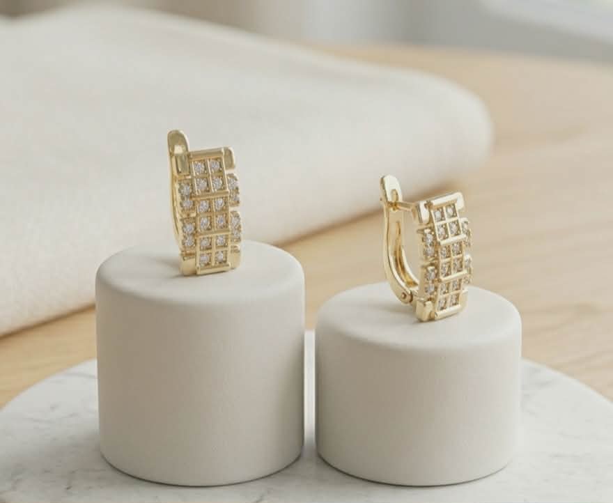 Adaugă o notă de strălucire sofisticată ținutelor tale cu acești cercei superbi, ce îmbină perfect stilul clasic cu tendințele geometrice actuale.
