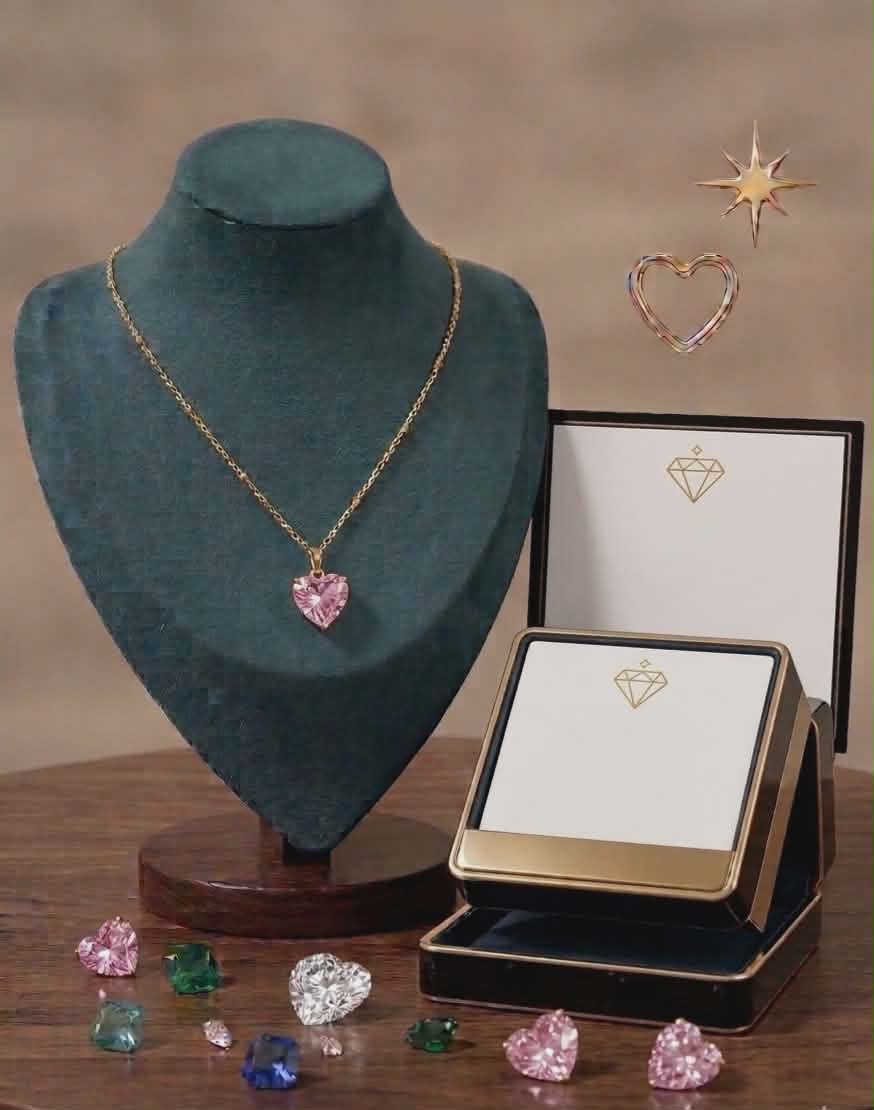 Adaugă o notă de rafinament și culoare ținutei tale cu acest colier superb! Pandantivul în formă de inimă, într-o nuanță delicată de roz, captează lumina din orice unghi, oferind o strălucire de neegalat.