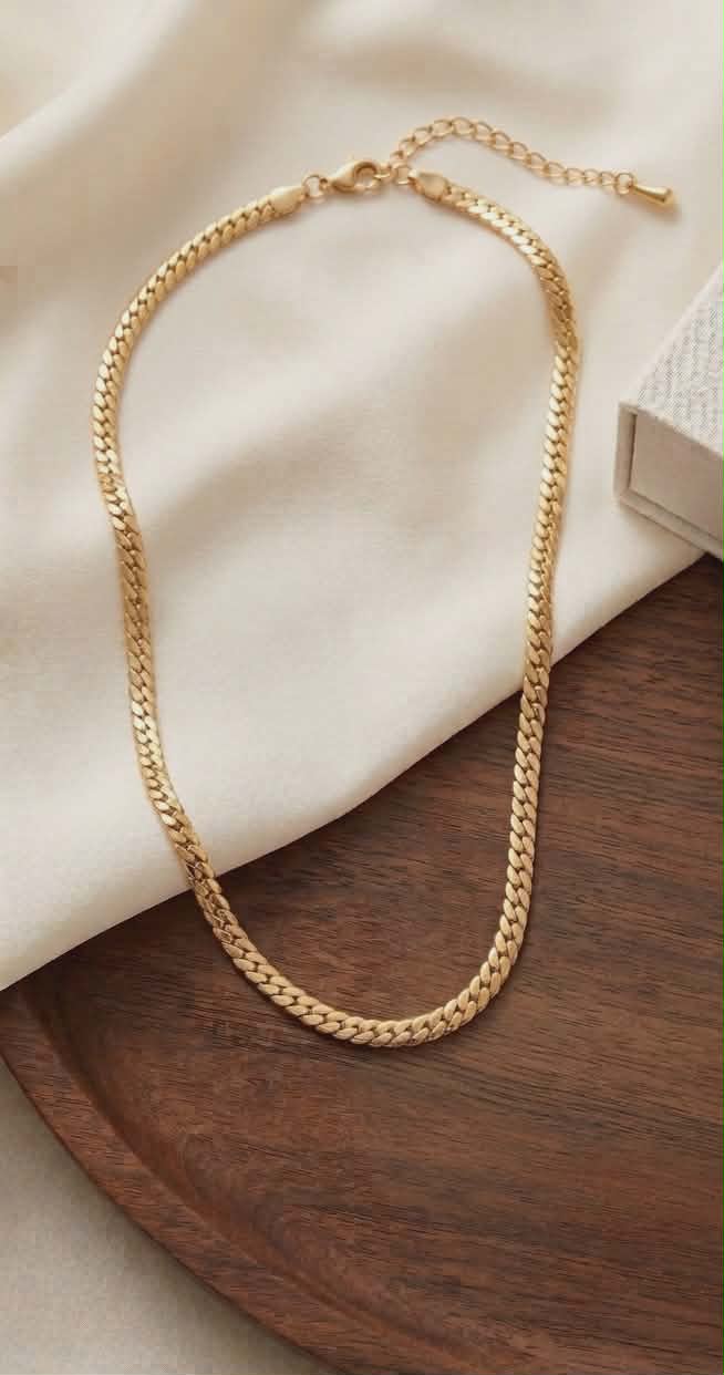 Adaugă o notă de rafinament ținutelor tale cu acest colier superb, realizat dintr-un lanț cu zale plate interconectate. Designul său minimalist, dar de impact, îl face accesoriul perfect atât pentru o ținută de zi, cât și pentru un eveniment special.