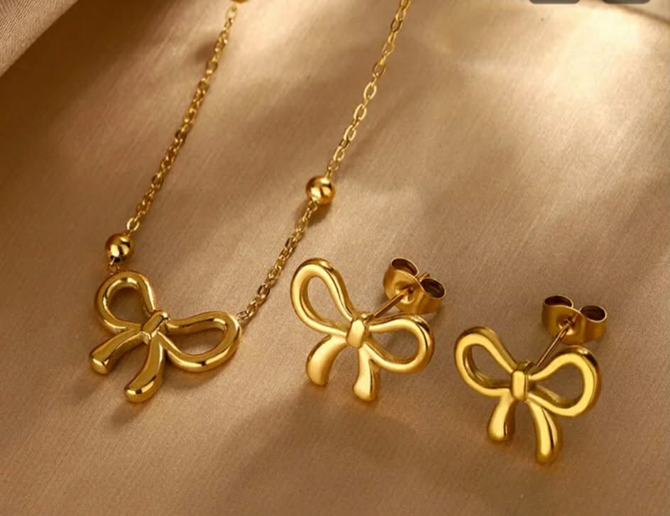 Set Bijuterii Golden Bow – Colier și Cercei