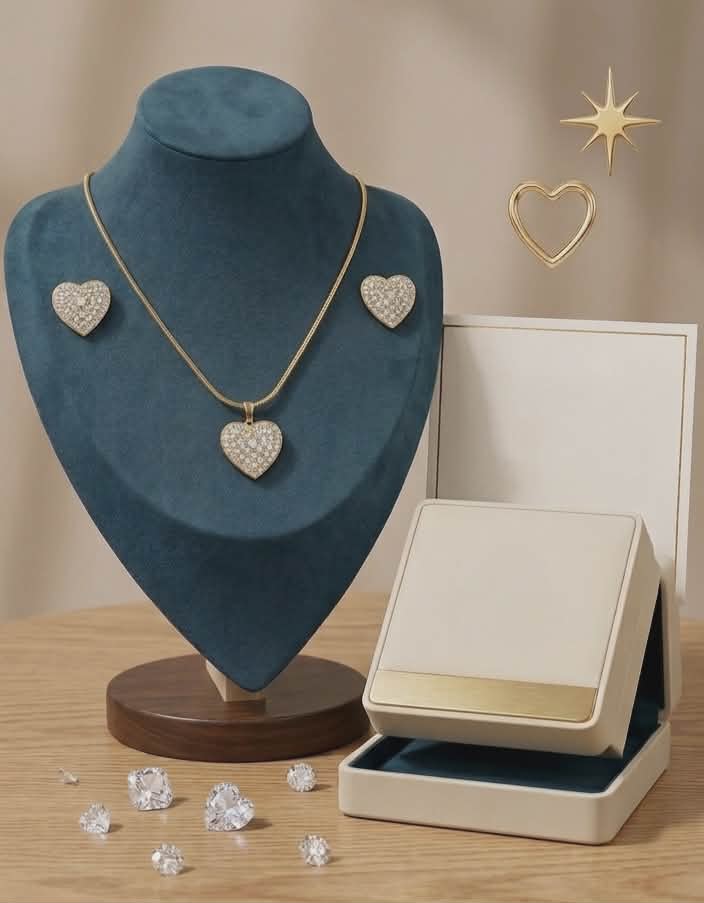 Adaugă o notă de rafinament și iubire oricărei ținute cu acest set superb de bijuterii, ideal pentru momente speciale sau pentru a fi oferit drept cadou persoanei dragi.