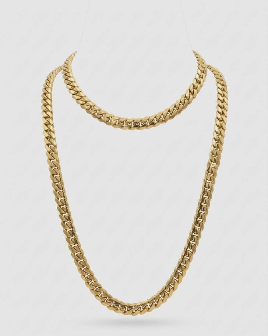 Adaugă o notă de rafinament ținutelor tale cu acest set de două lanțuri tip Cuban Link