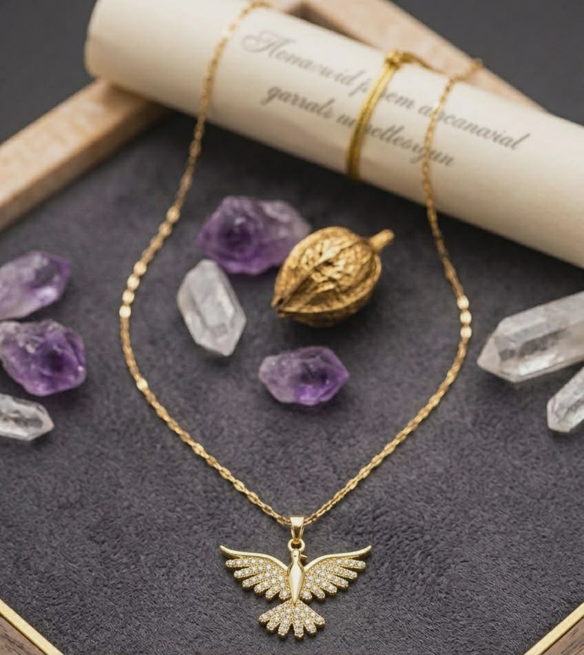 Adaugă o notă de strălucire ținutelor tale cu acest colier deosebit, ce îmbină designul delicat cu o eleganță atemporală. Pandantivul, sub formă de aripi deschise, este meticulos decorat cu cristale de zirconiu ce captează lumina la fiecare mișcare.